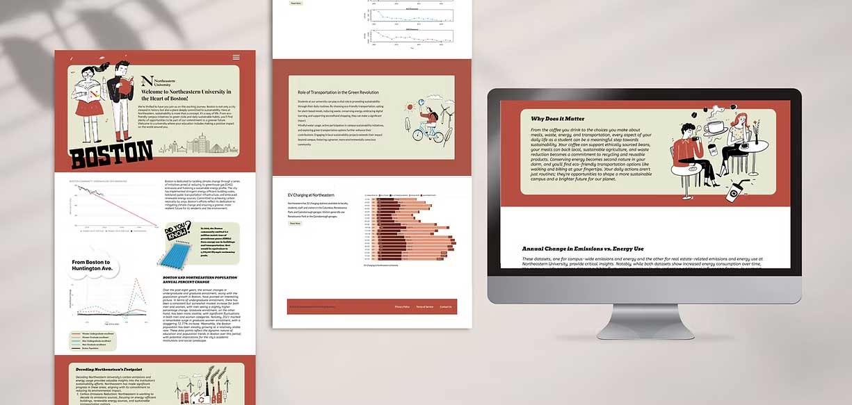 - The design of the Northeastern University Sustainability Hub website was meticulously crafted to embody the university's commitment to sustainability while captivating the attention of incoming students.