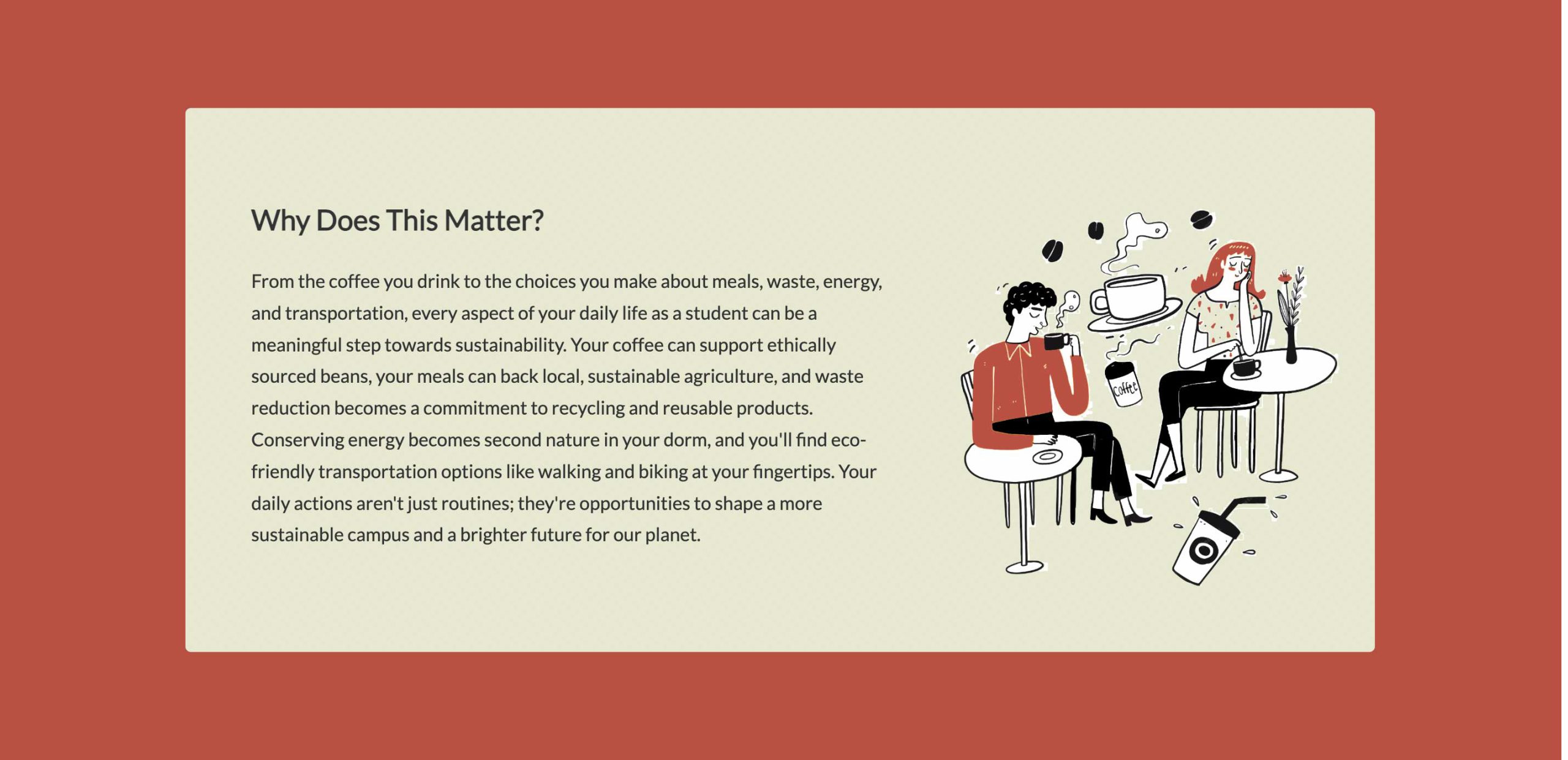 - How might we empower sustainability initiatives with greater visibility and foster meaningful engagement within the Northeastern community?