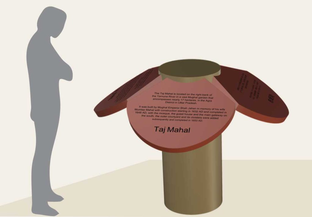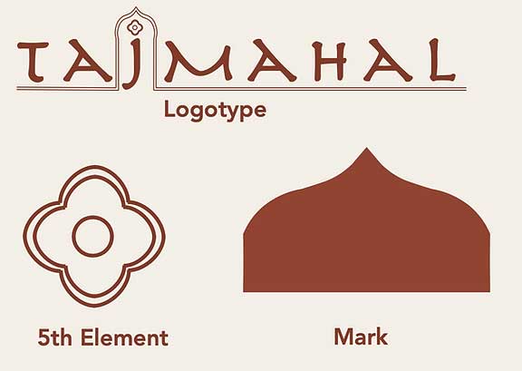- The mark is a stylized representation of the Taj Mahal’s silhouette, capturing its iconic dome and four minarets.
