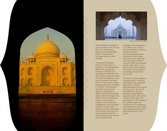 An immense mausoleum of white marble, built in Agra between 1631 and 1648 by order of the Mughal emperor Shah Jahan in memory of his favourite wife, the Taj Mahal is the jewel of Muslim art in India and one of the universally admired masterpieces of the world’s heritage.The Taj Mahal is located on the right bank of the Yamuna River in a vast Mughal garden that encompasses nearly 17 hectares, in the Agra District in Uttar Pradesh.