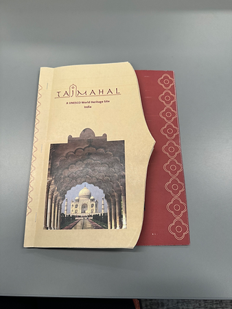 Letterhead: The letterhead would likely showcase the Taj Mahal silhouette subtly at the top or bottom of the page, with the company name and contact information prominently displayed in a black serif font for a professional look.